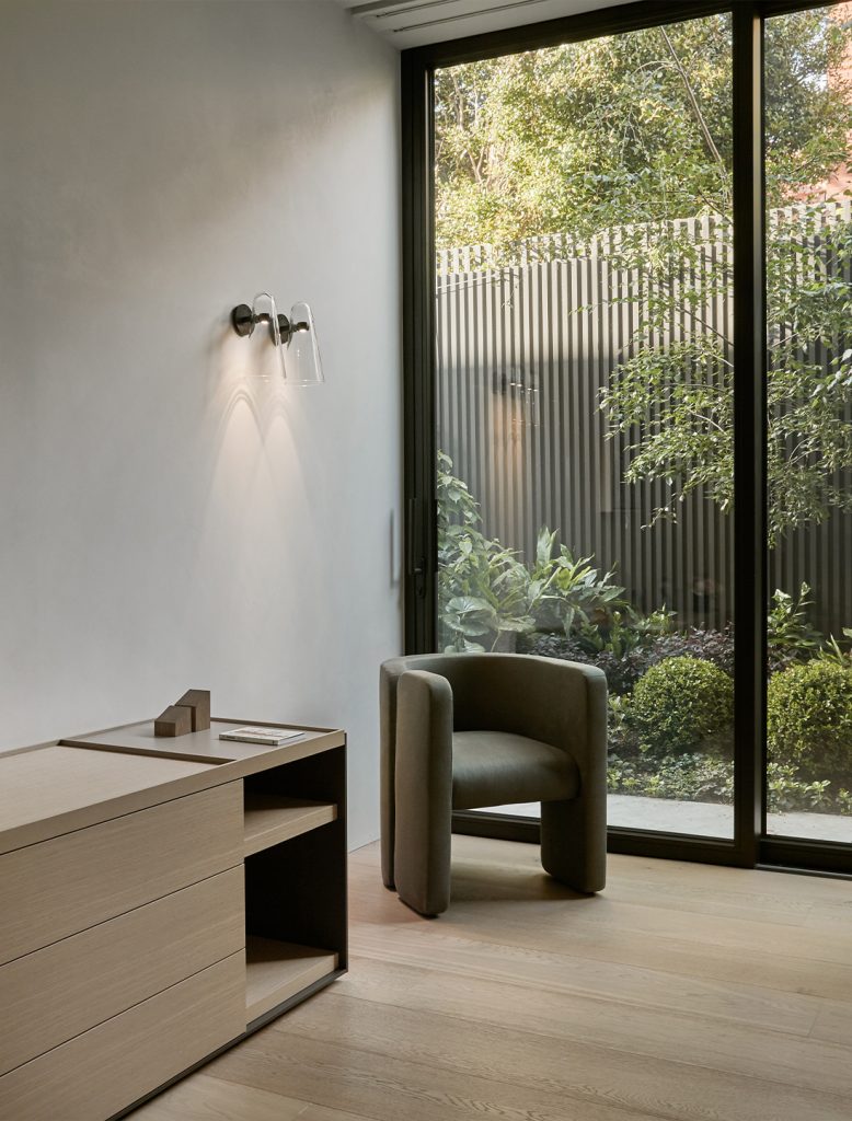 Domi exemplifies grace through its contemporary elongated bell form and weightless suspension.